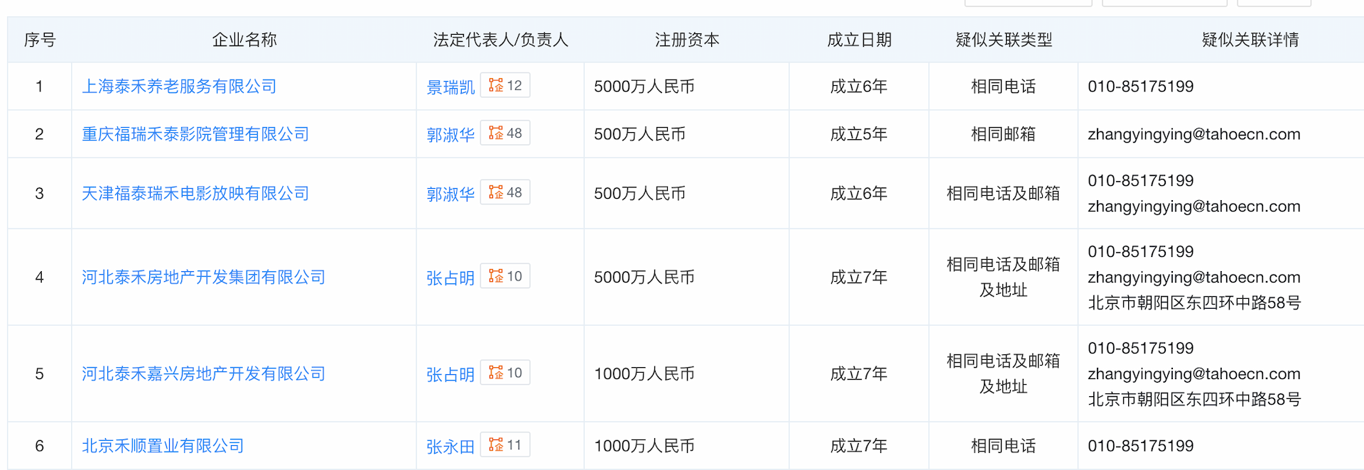 值得一提的是,据天眼查披露的信息显示,北京精达房地产开发有限公司的多处信息和泰禾集团相同,如工商资料中的联系电话和邮箱,多名管理人员曾在泰禾集团及泰禾投资旗下的相关公司任职。