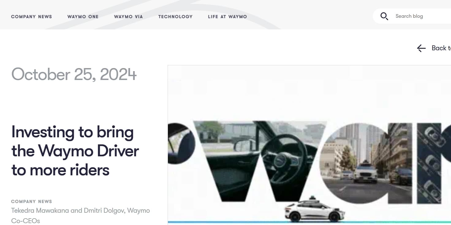 到了上个月,网约车平台优步宣布,从2025年初开始,将和Waymo在奥斯汀和亚特兰大推出无人驾驶出租车服务。Waymo主要继续负责车辆的测试和运营,包括道路援助和某些乘客支持功能。