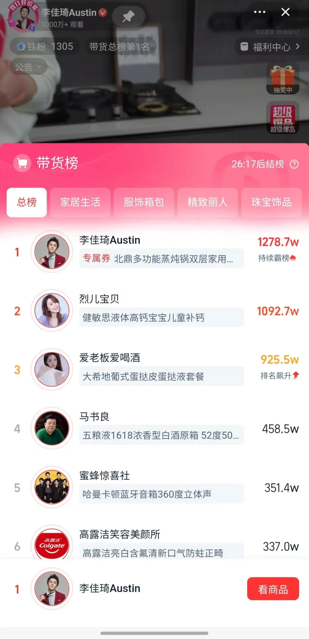 这期间,几乎只有李佳琦一人,始终保持着极强的人气稳定性和带货稳定性。