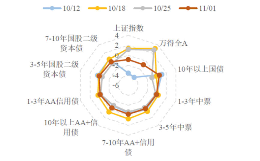 从10月以来,超长期利率债在2.27%-2.38%区间内波动震荡,尤其是10月下旬以来,超长期利率债从2.38%成交利率的高点“俯冲”至11月6日的2.27%,整体振幅高达11bp,也一定程度影响到超长期信用债市场的表现。