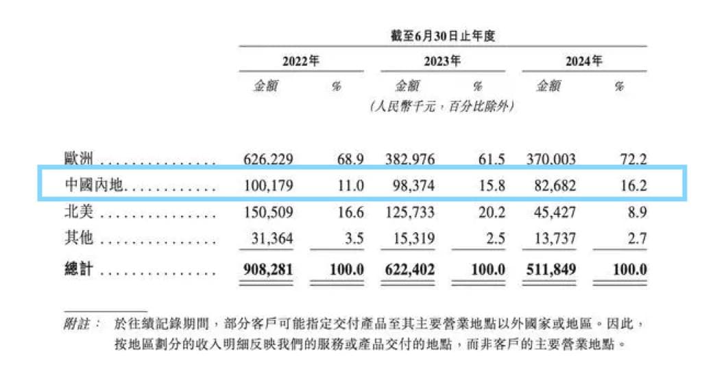 在海外大客户带来的收入逐渐下滑之际,中国市场带来了新的转机,乐欣户外在中国内地市场的收入占比逐年提升。2022年至2024年分别实现收入1亿元、9837.4万元、8268.2万元,收入占比分别为11%、15.8%、16.2%。