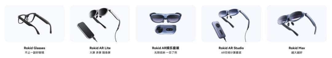 Rokid对AR技术一直非常沉迷。自2014年创立起,Rokid至今已经走过十年了,一直聚焦在AR赛道。在这次发布的新产品之前,Rokid 就相继推出了一体式、分体式、工业级、消费级、展陈文旅行业应用等不同形态和使用场景的AR眼镜产品,此外还推出了集充电和手柄一体的AR空间计算套装等产品。