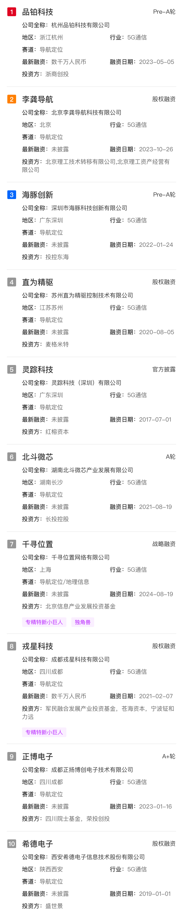 一级市场方面,北斗导航赛道主要有这些未上市企业及投资机构: