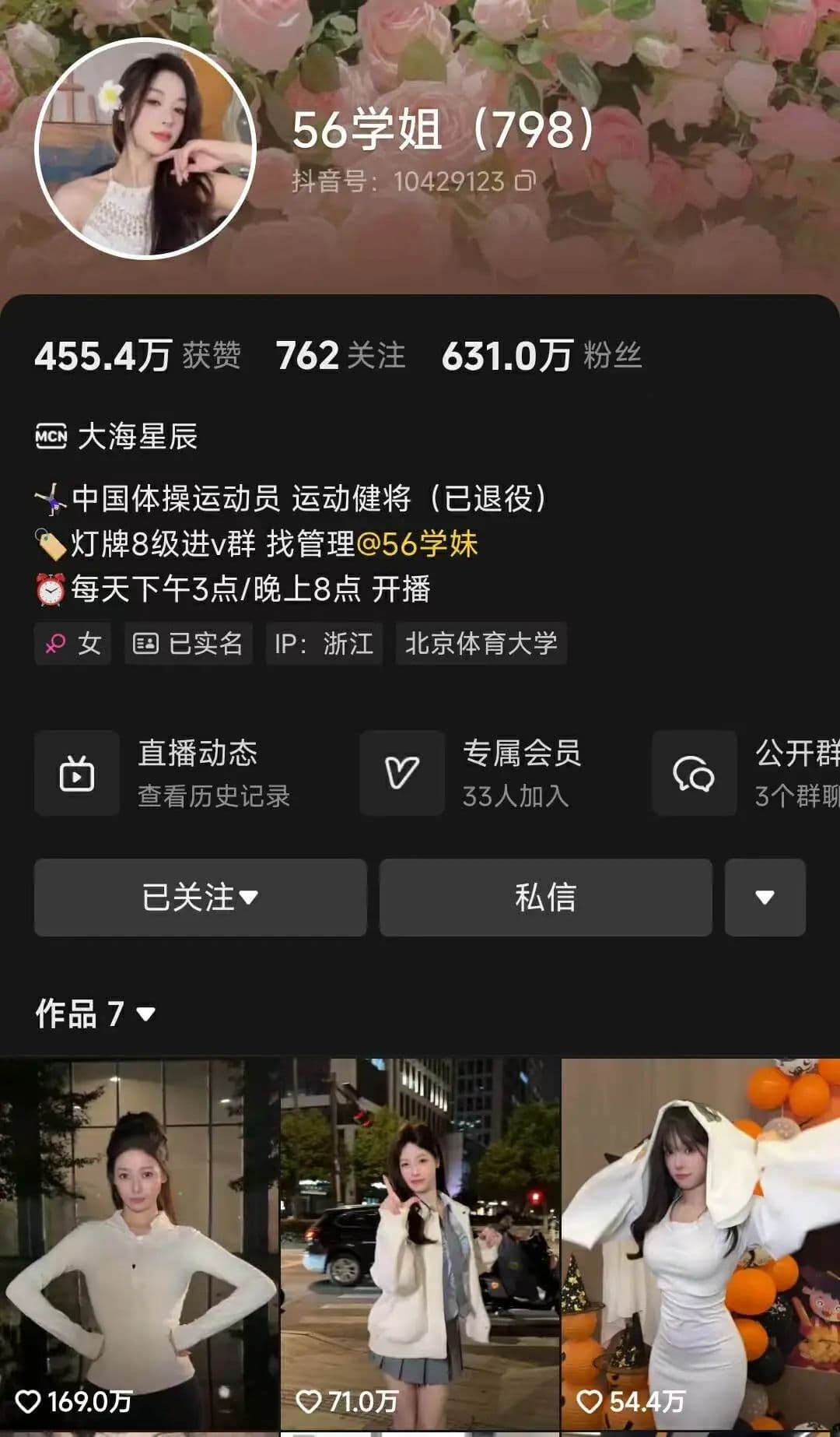 吴柳芳抖音账号“56学姐(798)”