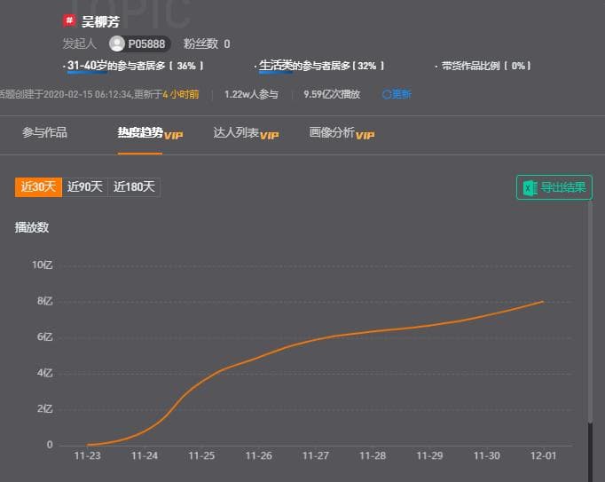 11月26日,吴柳芳抖音账号被禁止关注,理由是“违反社区规则”,这进一步加剧了相关讨论。新抖数据显示,不到10天时间,吴柳芳的抖音同名话题播放量就暴涨13亿次。
