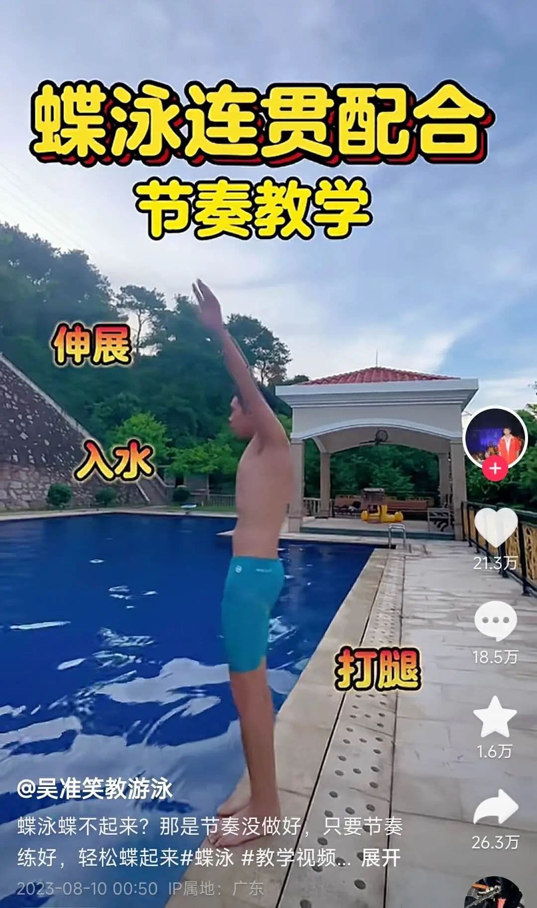 一类是转型健身博主,分享运动教学视频。比如前国家队游泳运动员吴准笑,日常视频就是分享自己的游泳教学视频,目前抖音粉丝数达102万。