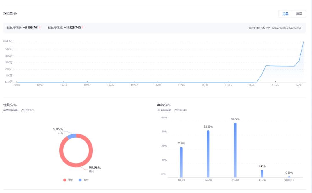 值得注意的是,相比解禁前,吴柳芳的女粉占比提升了5%,这证明吴柳芳已经开始吸引更多女粉关注。