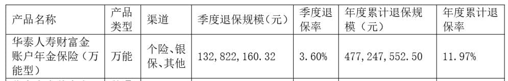 仅这一款产品的退保金额就超过华泰人寿2023年全年的退保金额6.50亿元。