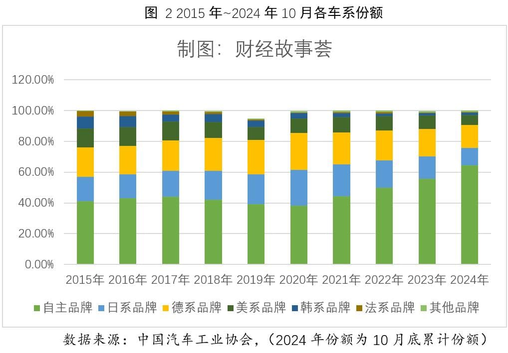 自主品牌市占率近4年以每年一个台阶的跳跃式提升,从0到40%,用了30多年,从重回40%到占有三分之二,只用到3年多时间。