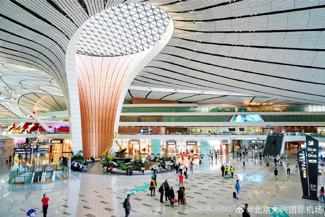 同样以大兴国际机场为例。商区之外,大兴机场的公共空间宽敞又温暖。甚至因为设计前卫、功能齐全而被来往旅客睡成了「洗浴中心」。