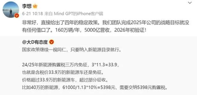 车企2025年销量目标曝光:蔚来理想变得保守,小米最激进
