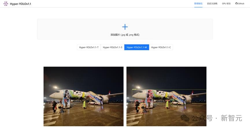 智能媒体与认知实验室还推出了一款基于Hyper-YOLO的零代码训练平台。在该平台上,无需配置环境、修改配置文件等繁琐操作,既可以一键上传图像利用训练好的Hyper-YOLO模型进行推理,也可以上传数据集自定义训练、直观展示训练过程。(推荐使用PC端chrome/Edge浏览器)