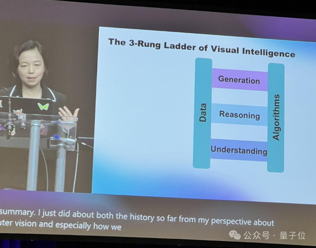 李飞飞:我认为,直觉告诉我们,智能具有不同的复杂度和精密度。在演讲中,我想传达这样一种感觉:在过去的几十年里,尤其是过去十多年的深度学习革命中,我们在视觉智能方面所取得的成就令人惊叹。我们越来越擅长使用这项技术。我还受到了 Judea Pearl 的“因果关系阶梯”的启发。(收录于2020年出版的《the Book of Why》)