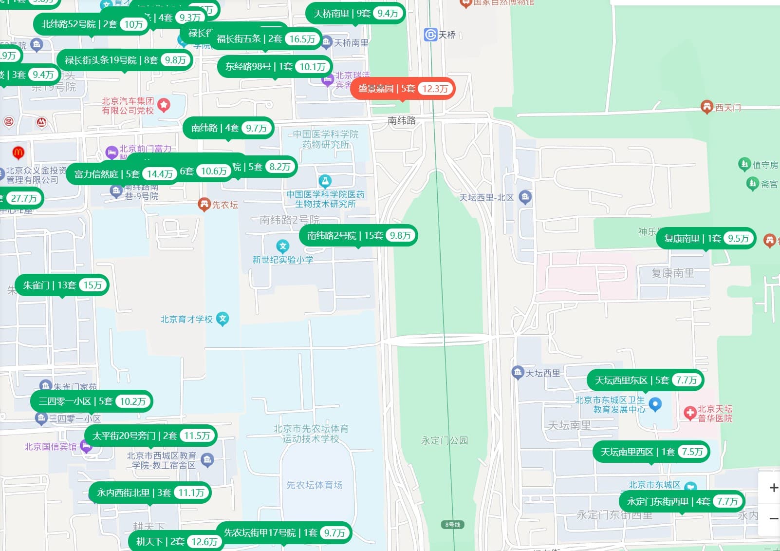 奥森、颐和园板块也是同样的情况,但凡不是“老破”小区,价格普遍在10万元/平米左右。天坛公园板块因为位置更靠近内城,所以优质资产价格还要更高一节。