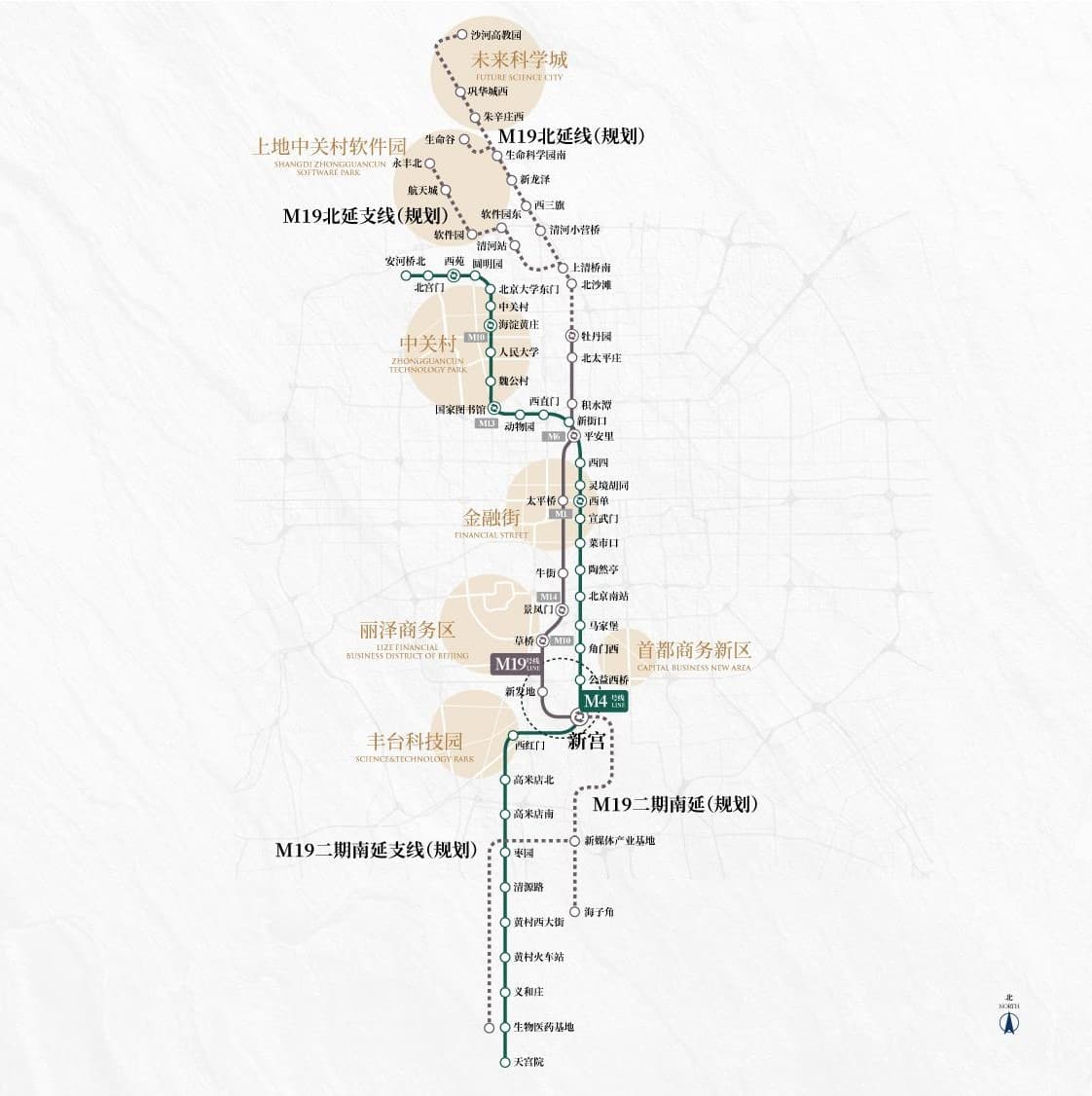 19号线经过金融街,将来会连接上地中关村软件园和未来科学城,这三大板块是国内金融和互联网产业龙头聚集区。