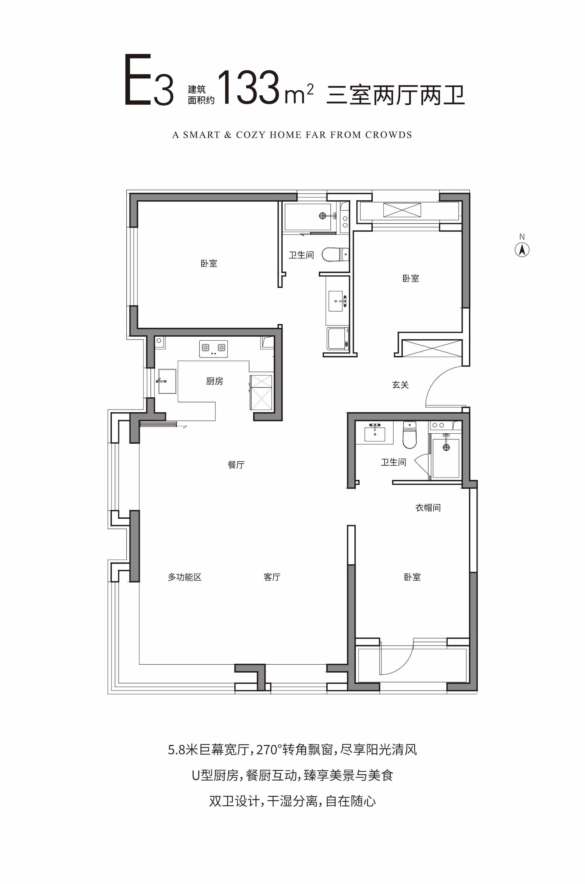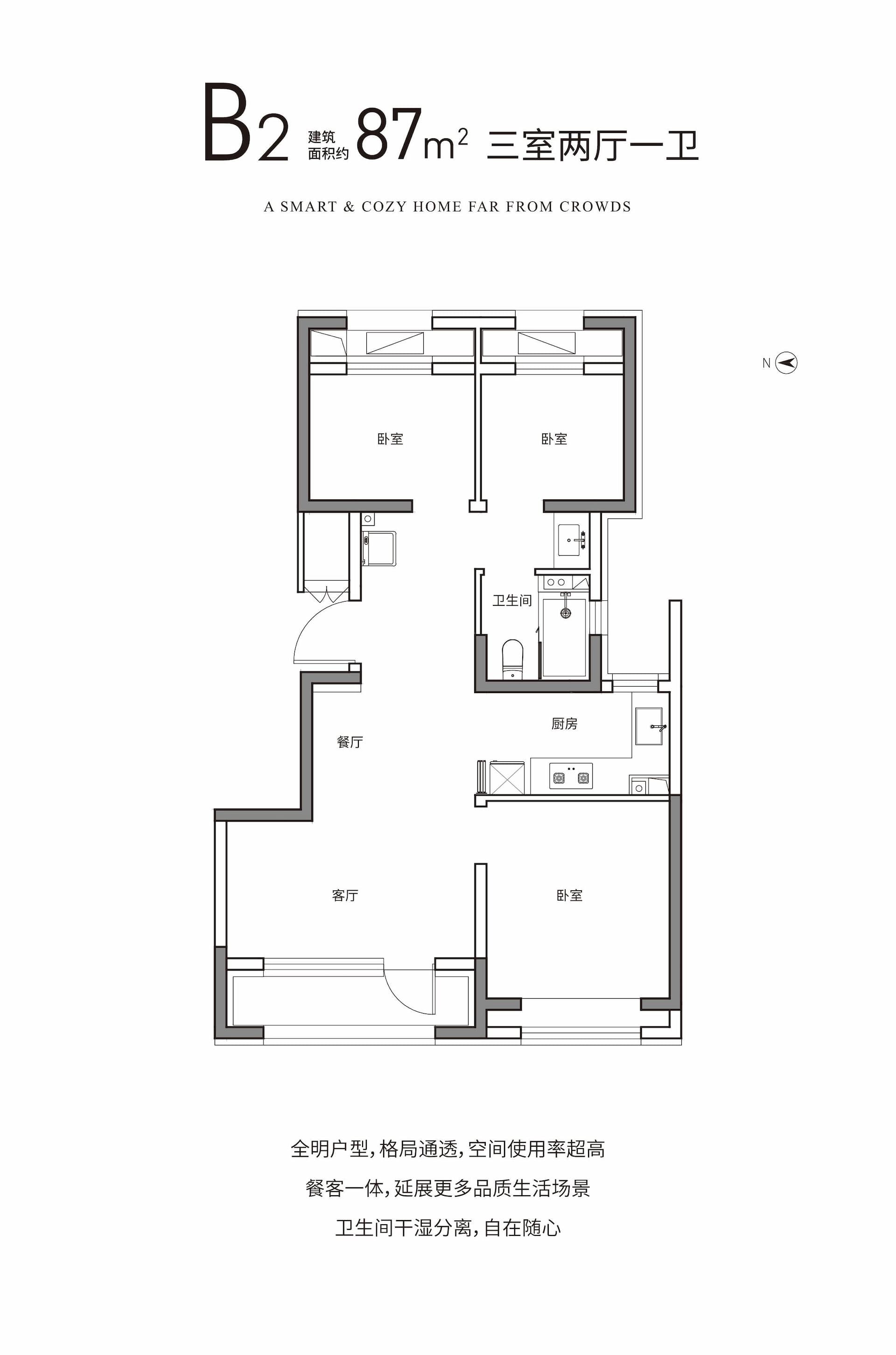 比如,为了不浪费户均86平米的景观视野,森与天成建面约87平米的三居室户型也拥有一个4.55m的奢尺宽厅。