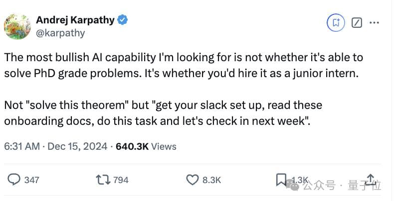 不少网友对于Karpathy这一观点表达了“100%”认同,我们所需要的只是一些基本的AI Agent,虽然现在能力也远远不够,似乎实习生所面对的问题数量要比博盛应对的问题要多。