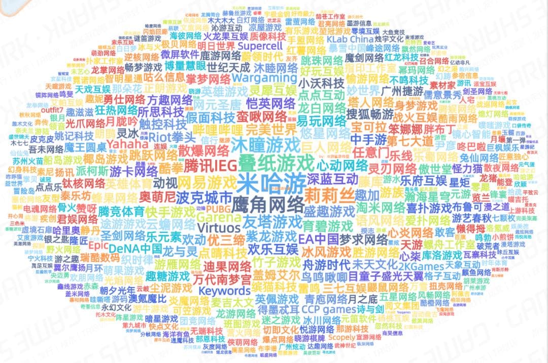 就比如上海聚集了米哈游、叠纸、莉莉丝、鹰角、散爆、蛮啾、B站一众二次元游戏公司,此外还有腾讯、网易、EA、动视、Supercell、沐瞳、完美、紫龙、心动网络、巨人网络、盛趣游戏等海内外厂商。