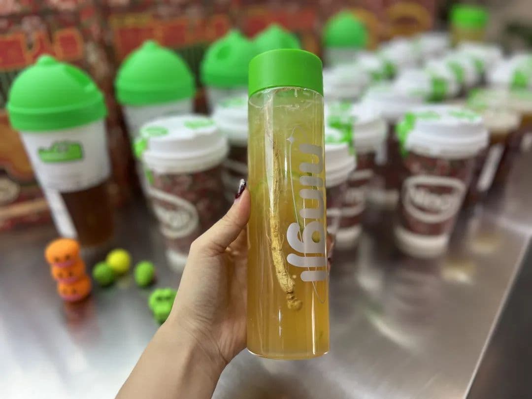 柠檬茶也要滋补。柠季在今年冬天上新霸道人参系列,每一杯中都有一颗完整的小人参,主打“冬季养生提劲”。