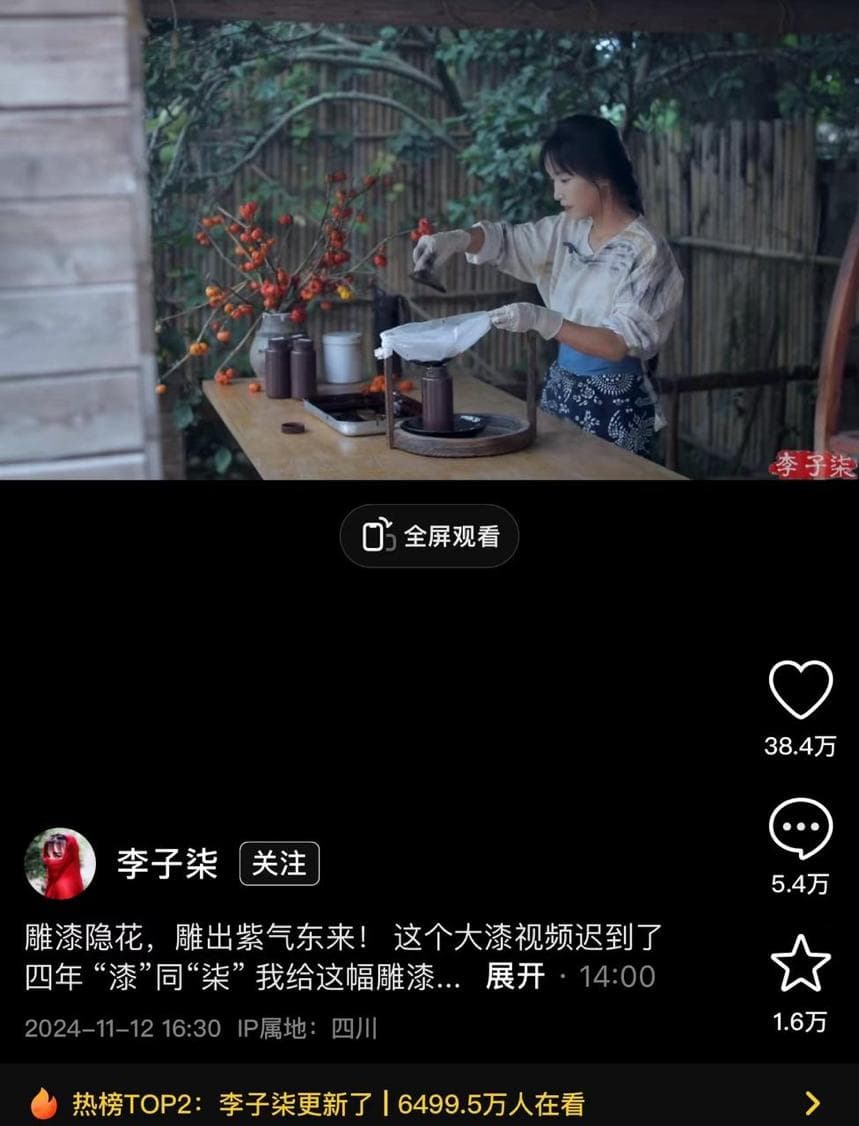 三一博士:李子柒确实不遵守流量规则,因为她和其他人不一样,她在退隐之前就已经是「中文互联网第一 IP」,她在中文互联网和外网都没有人比得上她。还有一点就是李子柒回来的姿态,她拿回来的第一期内容,你会觉得还是当年那个仙气飘飘的感觉,这个也很重要,跟之前的无缝对接过来了。
