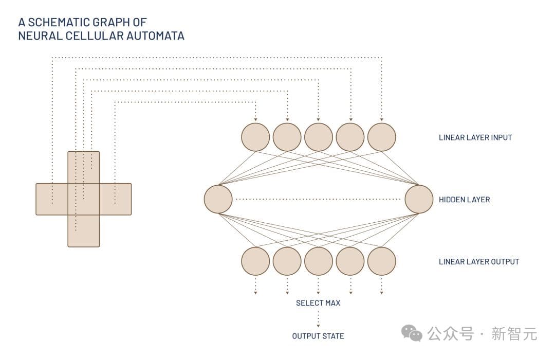 通过用神经网络表示局部转换函数,来参数化任何连续的元胞自动机。该基质是神经网络的权重空间。