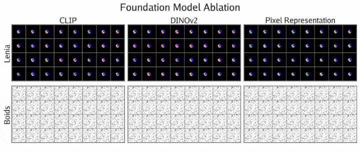 研究者使用Lenia和Boids基质,来研究启迪式算法的有效性,其中CLIP作为基础模型。