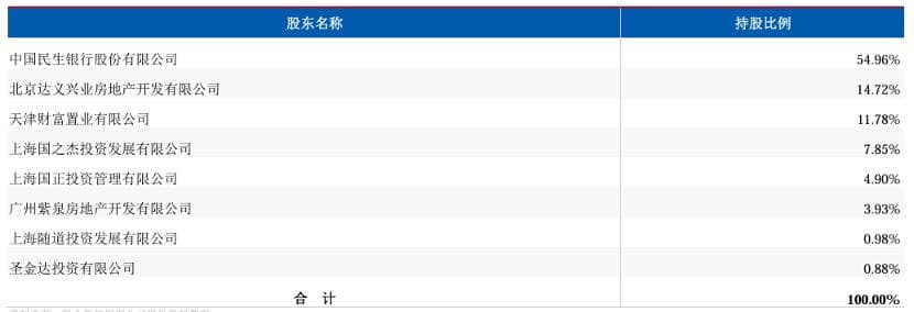 民生金租的八家股东中,部分是房地产企业,其中达义兴业为第二大股东,持股14.72%。