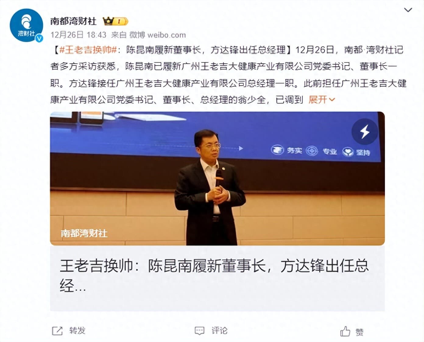 就突然换帅的事情,王老吉表示:“是集团内部正常的人事调整。”从王老吉的回应来看,二者之间或许没有什么关联。