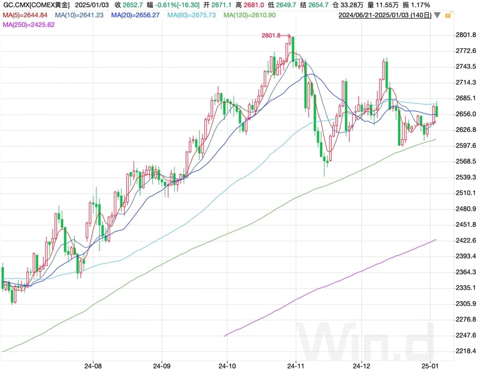 从金价去年11、12月间的震荡行情来看,川普交易2.0对黄金的影响则具有两面性。一方面是强美元、弱美债的格局对金价会产生一定的压制;另一方面,川普贸易政策对未来全球贸易环境的冲击会刺激投资者避险需求上升,进而对金价构成利好。金价在去年11、12月间的两轮脉冲式上涨,表明投资者对川普交易2.0的理解更加全面与深入,此前弱贵金属的固有格局也已经被打破。