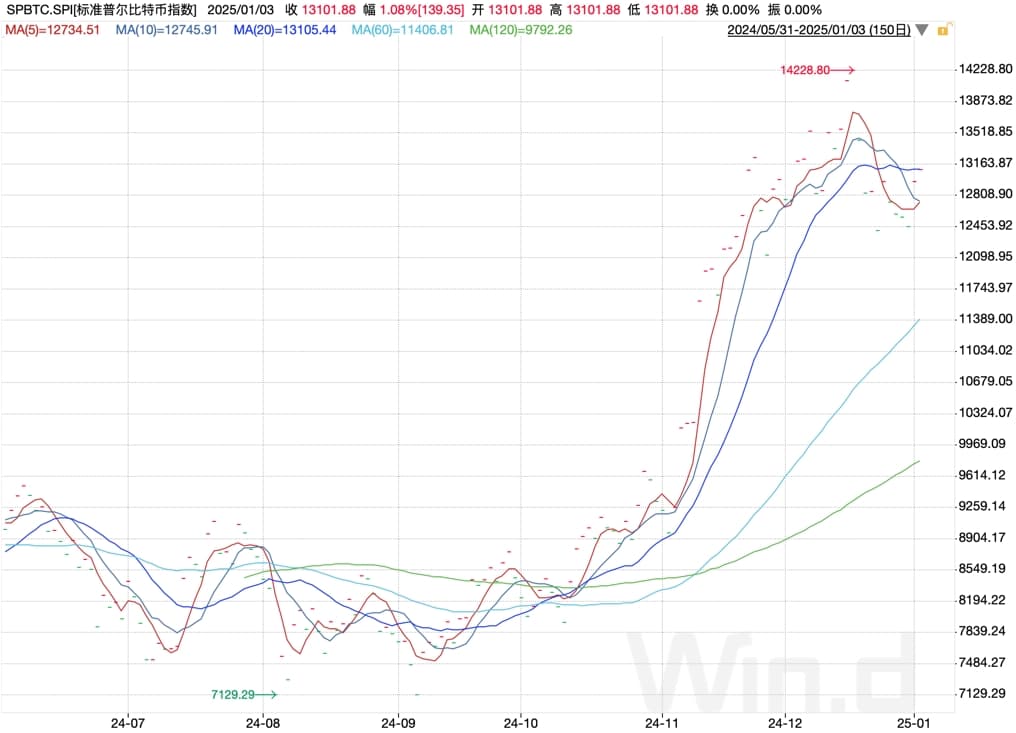 川普交易2.0对比特币的影响颇值得关注,比特币是典型的高风险资产,本身受川普交易的利好(风险偏好抬升、利多风险资产),同时川普对比特币的支持态度更是其单价走强的重要支撑。因此在川普胜选后,比特金单价在11月初到12月中旬期间一路暴涨,同期比特币相关股指的表现也是气势如虹。然而在12月中旬的美联储议息会议中,鲍威尔无意参与比特币战略储备计划(BSR)的表态,导致比特币单价应声下挫,比特币相关股指也在同时出现大幅调整。