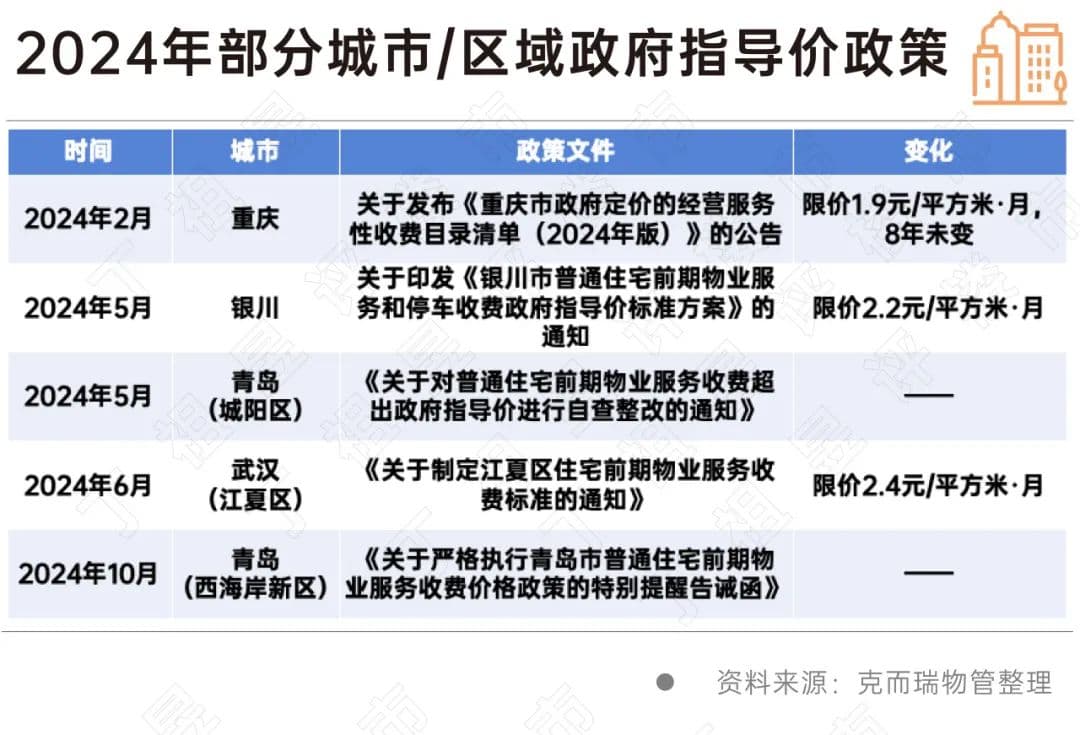 2024年5月31日,青岛城阳区住建局印发《关于对普通住宅前期物业服务收费超出政府指导价进行自查整改的通知》,要求物企自查整改,依照物业服务区域收费面积相应调整基准价格上浮幅度。10月22日,青岛西海岸新区市场监督管理局等3部门联合印发《关于严格执行青岛市普通住宅前期物业服务收费价格政策的特别提醒告诫函》,要求70家超出政府指导价的小区物业公司限期调整收费并退费。