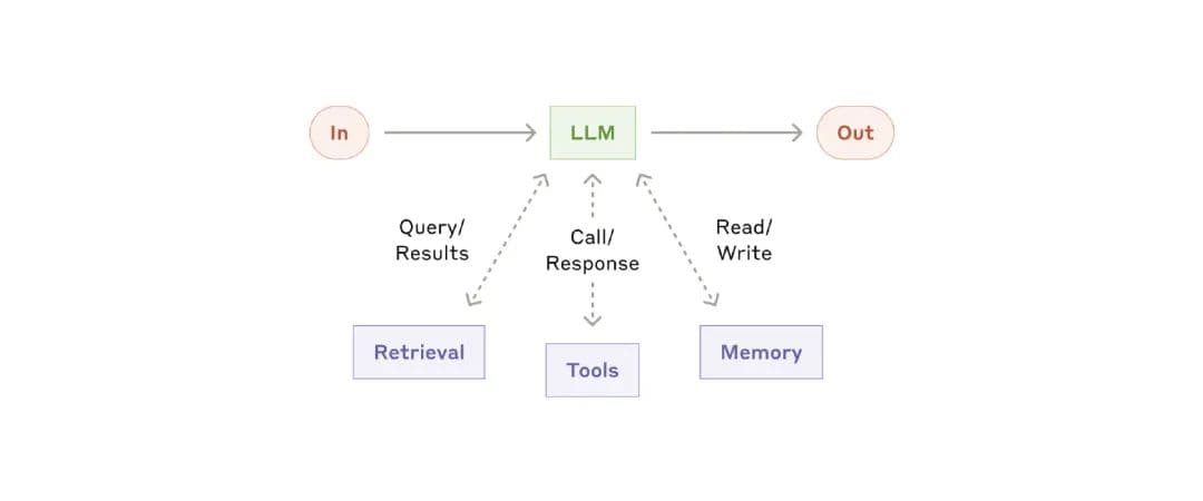 Agent 系统的基本构建块是增强了检索、工具和记忆等功能的一个 LLM。我们当前的模型可以主动使用这些能力,生成自己的搜索查询、选择合适的工具以及判断要保留哪些信息。