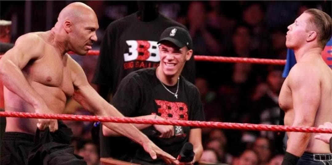 甚者,球爹还带着儿子们登上了WWE的舞台。