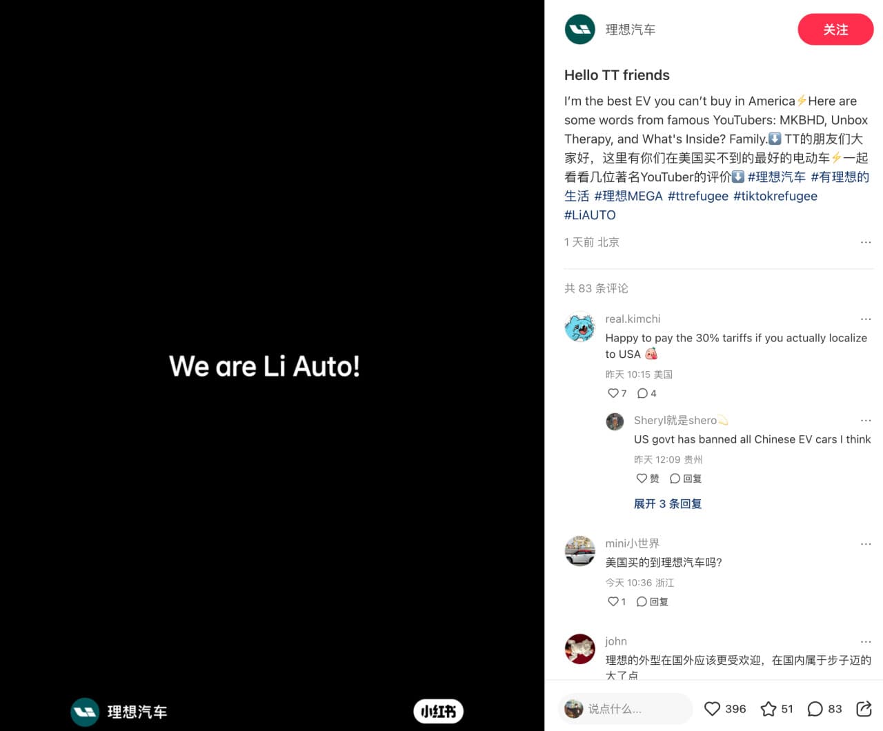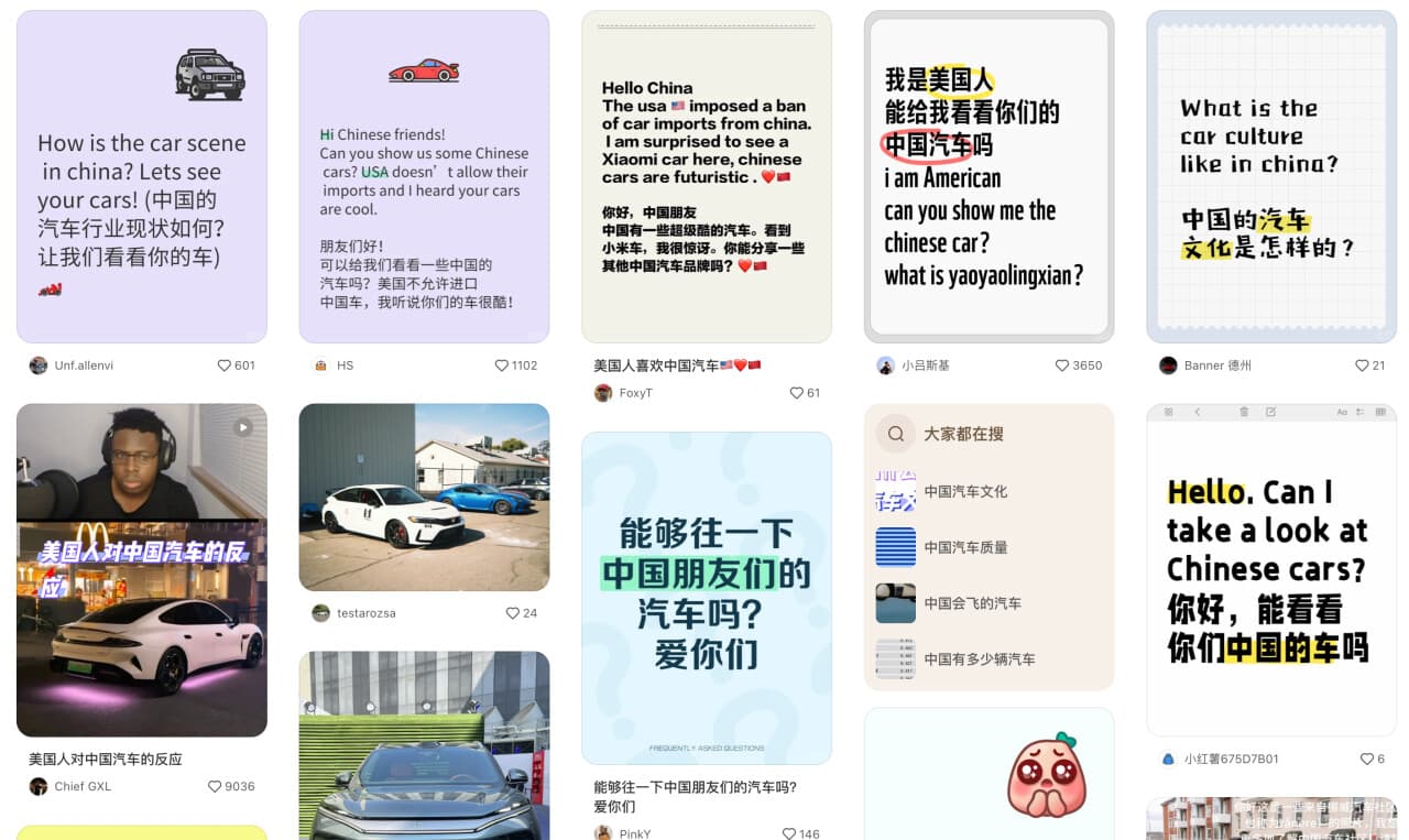 这也让小红书成为了中美网友交流汽车文化的“新阵地”。尽管中国汽车出海美国在目前看来仍然前景渺茫,但在小红书上,不少美国人第一次感受到了来自中国汽车的震撼。