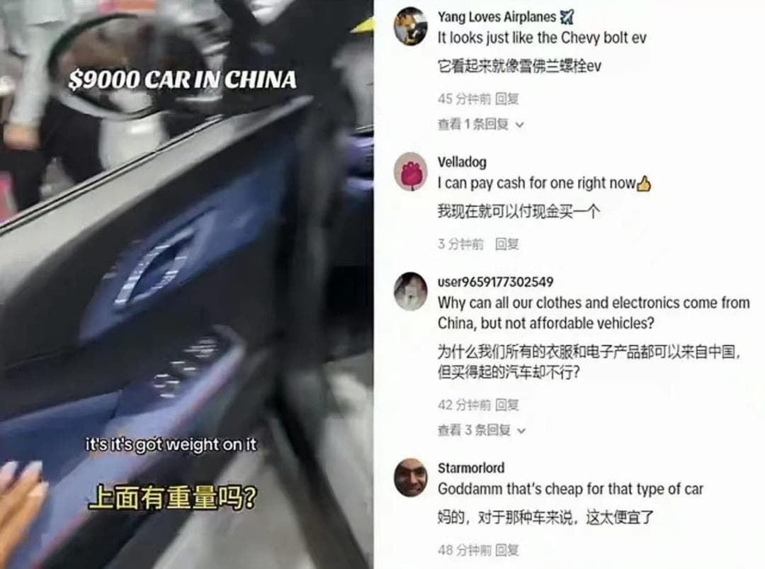 还有中国网友与美国网友探讨起为何美国阻碍中国汽车的进入,一位美国网友说:“我认为我国政府知道我们无法与中国电动汽车的卓越性能相媲美。这让我心碎!我想要更多有趣的车辆和品牌。”