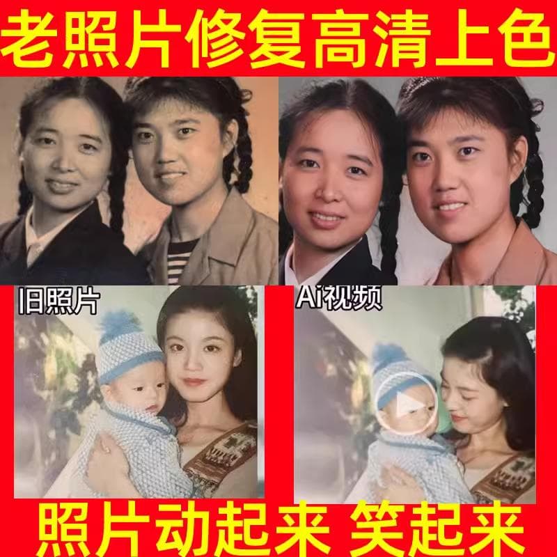 除了发现一些长辈因为我去年的工作,已经对 AI 应用有了最基本的了解之外,比起常规的 AI 聊天类应用对话,长辈之间关于 AI 聊的更多的,往往是一些具体、但并不会在年轻人之间流行的应用。例如美图秀秀的免费「老照片复活」,亦或是一些 AI 相机 App 实现的「还原年轻的自己」。
