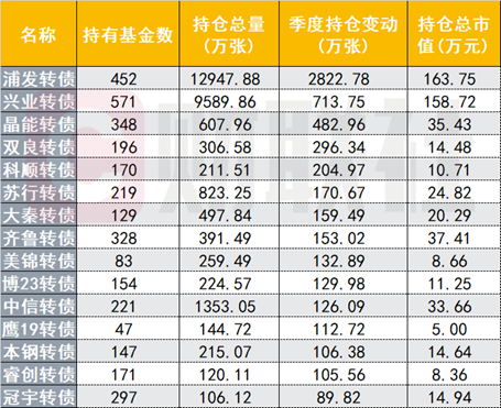 从持仓的个券变化来看,公募基金在四季度大幅增持了浦发、兴业、晶能、双良、科顺等转债。