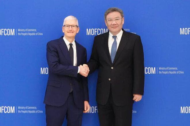商务部网站消息,10月25日,商务部部长王文涛会见美国苹果公司首席执行官库克。双方就苹果公司在华业务发展、中美经贸关系等进行了交流。