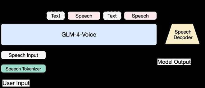 能够在情感的把握上做到如此精准,是因为 GLM-4-Voice 在 GLM-4-9B 的基座模型基础之上,经过了数百万小时音频和数千亿 token 的音频文本交错数据预训练,拥有很强的音频理解和建模能力。为了支持高质量的语音对话,智谱设计了一套流式思考架构:输入用户语音,GLM-4-Voice 可以流式交替输出文本和语音两个模态的内容,其中语音模态以文本作为参照保证回复内容的高质量,并根据用户的语音指令变化做出相应的声音变化,在保证智商的情况下仍然具有端到端建模 Speech2Speech 的能力,同时保证低延迟性(最低只需要输出 20 个 Token 便可以合成语音)。
