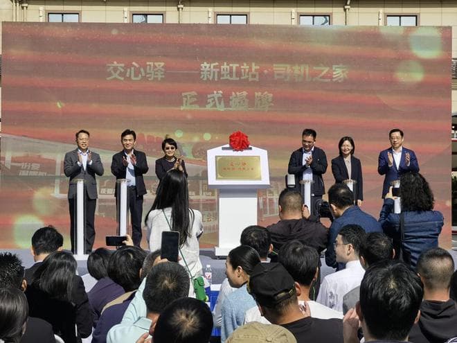 10月30日,在北翟路超级充电站,虹桥交通枢纽核心区内首个司机之家“交心驿——新虹站·司机之家”正式揭牌启动。活动现场,闵行区总工会、闵行区交通委员会、新虹街道相关负责人为驾驶员代表送上关怀礼包,并共同发布“司机之家”一系列服务项目。
