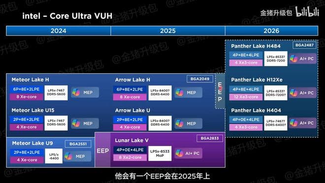 Panther Lake 系列移动处理器将采用 Cougar Cove 架构性能核、Darkmont 架构能效核、“Celestial”Xe3架构核显、NPU 5,有望支持更快内存。