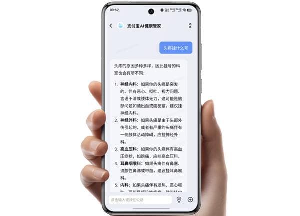 据了解,支付宝AI健康管家是今年9月发布的产品,提供科普问答、找医生、读报告、陪看诊、问医保等30多项AI健康服务,满足用户日常看病就医、家庭健康管理的需求。