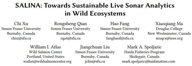完成实地合作之后,徐驰开始撰写论文。日前,相关论文以《SALINA:在野生生态系统中实现可持续的实时声纳分析》(SALINA:Towards Sustainable Live Sonar Analytics in Wild Ecosystems)为题发在 ACM SenSys(ACM Conference on Embedded Networked Sensor Systems)。