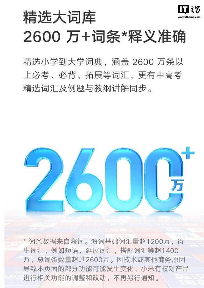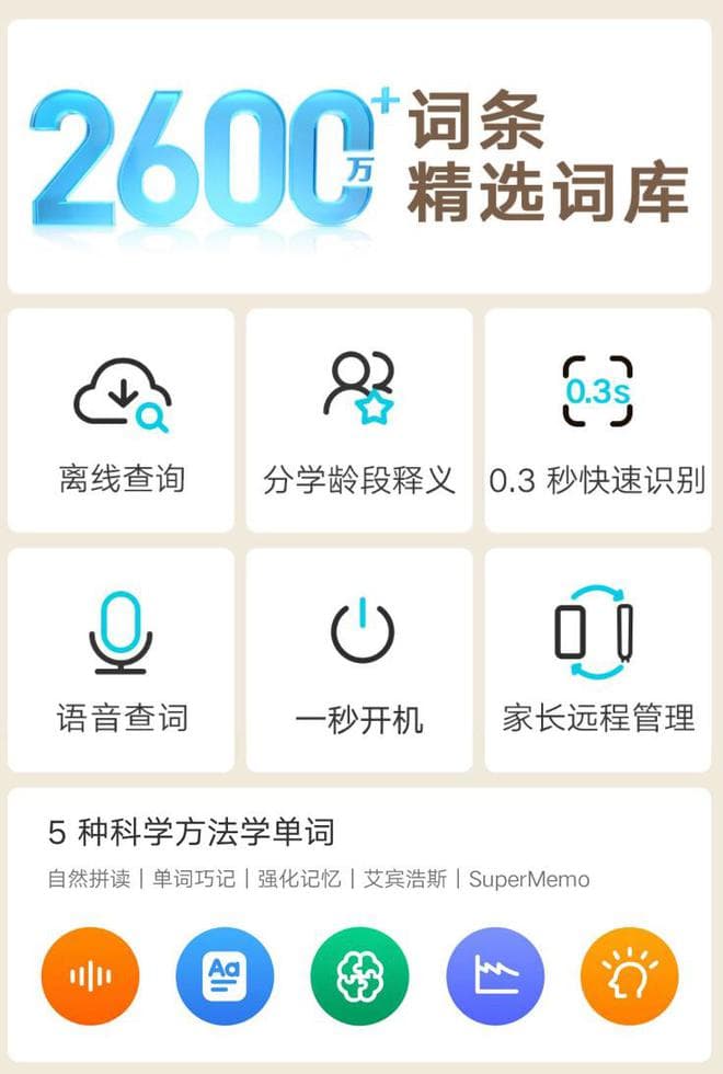 据介绍,这款词典笔号称拥有2600万 +词条 / 精选词库,支持离线查询、语音查词、“一秒开机”、家长远程管理。