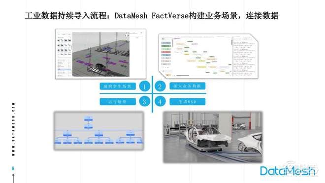 本次研讨会,范寒露以《构建时空一致的汽车制造业模拟数字孪生平台与应用》为主题,分享了“数字孪生”技术与应用在行业中的发展趋势,以及制造业企业构建数字孪生平台所面临的挑战。之后,范寒露对 DataMash FactVerse 平台进行了详细的解读,包括数字孪生场景创建和执行、监控和仿真、合成数据生成、逐步验证工具等不同组件;并从孪生场景编辑、业务数据接入、场景运行、USD 生成四个方面,介绍了 FactVerse 平台的使用流程。