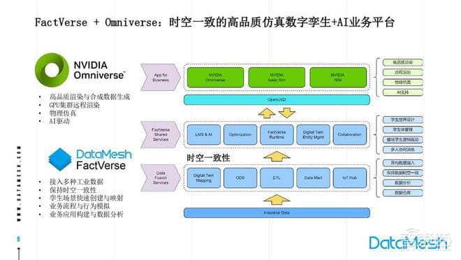 范寒露还提到,未来 FactVerse 将深度整合 NVIDIA Omniverse™ 平台高品质渲染与合成数据生成、物理仿真以及 AI 驱动等核心能力,为企业提供构建高品质的数字孪生+AI业务平台,并通过视频展示了在蔚来汽车数字孪生工厂的实际渲染效果。