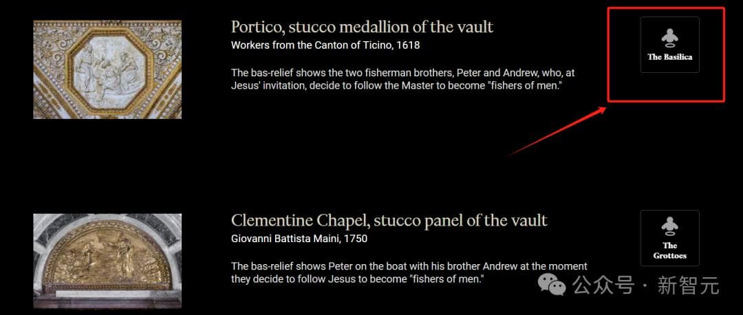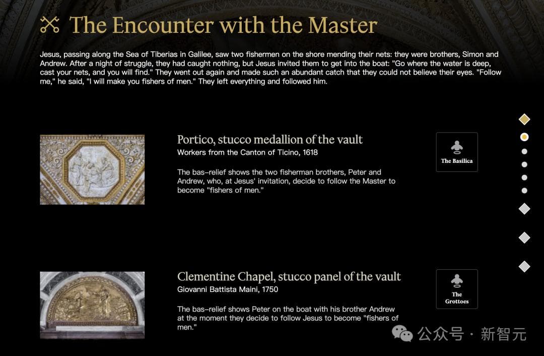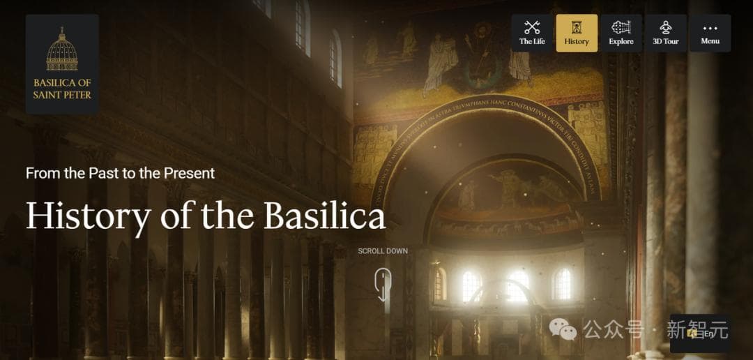 最新AI网站中包含了「The Life of St.Peter」「History of the Basilica」「Explore the Basilica」「Virtual 3D Tour」四个主要目录。