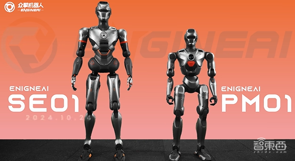 相较于众擎机器人在10月份推出的全尺寸人形机器人SE01,本次发布的PM01外观长相上依旧“钢铁侠”,不过尺寸上更为小巧一些,身高1.38m,体重约40kg。
