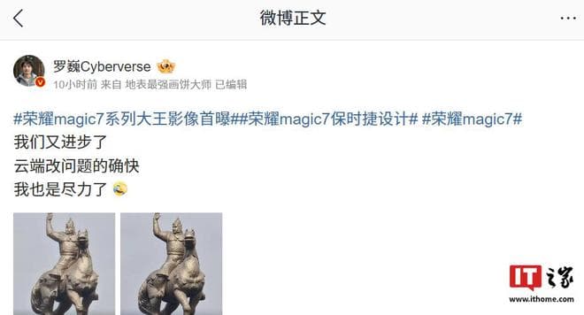罗巍还在评论区中回复了部分网友的问题:针对荣耀手机以后是否会支持放大至 200 倍,他表示“有可能哦”;针对 12 倍以内长焦的后续优化计划,他称“端侧的我们也会有优化推出,不过比云测慢”。