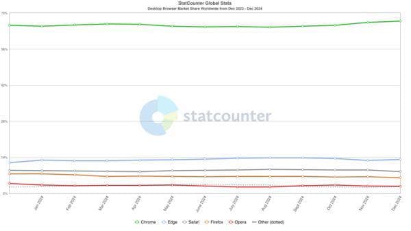 最新全球浏览器份额出炉:Chrome稳居榜首、Edge小幅上升